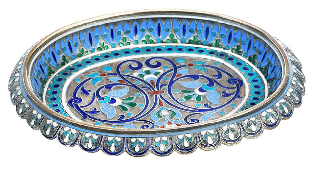 Russian Silver Champlevé Dish