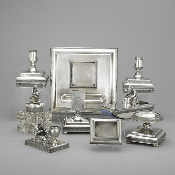 RUSSIAN SILVER DESK SET BY MIKHAIL IVANOV