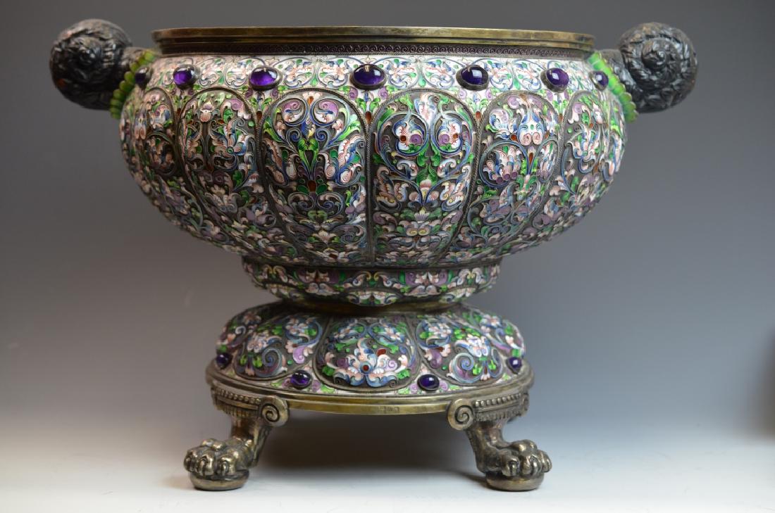 A fine hand-painted silver filigree base pastel enamel colored porcelain bowl5 days LeftRare antique porcelain bowl with hand-painted silver filigree base and famille rose enamel10 hrs LeftA Exquisite Cloisonne Inlaid Hetian Jade CupMar 21, 2026Rare antique collection: Hand-painted silver filigree base famille rose enamel porcelain bowl10 hrs LeftFABERGE - SILVER & AGATE CHARKA CUPMar 21, 2026Silver Censer Inlaid with Jade and Gems6 days LeftCHINESE CLOISONNE ZUN VASEMar 13, 2026A gilded gemstone cloisonn é enamel lion button aroma burner from the Qing DynastyMar 14, 2026A Han Dynasty_Bronze Cuo gold and silver inlaid multi-gemstone round vaseMar 21, 2026An Exquisite Silver Inlaid Gems Stone JarMar 13, 2026A Chinese Hardstone-Mounted Cloisonne Enamel Lidded Vase, c. 1900Mar 15, 2026A Russian silver enamel tripod tazza, Julius Rappaport, St. Petersburg, 19/20th C.Mar 18, 2026RUSSIAN GILT SILVER AND AGATE BOWL WITH DIAMONDS5 days LeftRussian Silver-Gilt and Cloisonne Enamel BeakerMar 15, 2026RUSSIAN SILVER ENAMEL SALT CELLAR, 1895Mar 21, 2026A CLOISONNE ENAMEL BOMBE CENSERMar 22, 2026