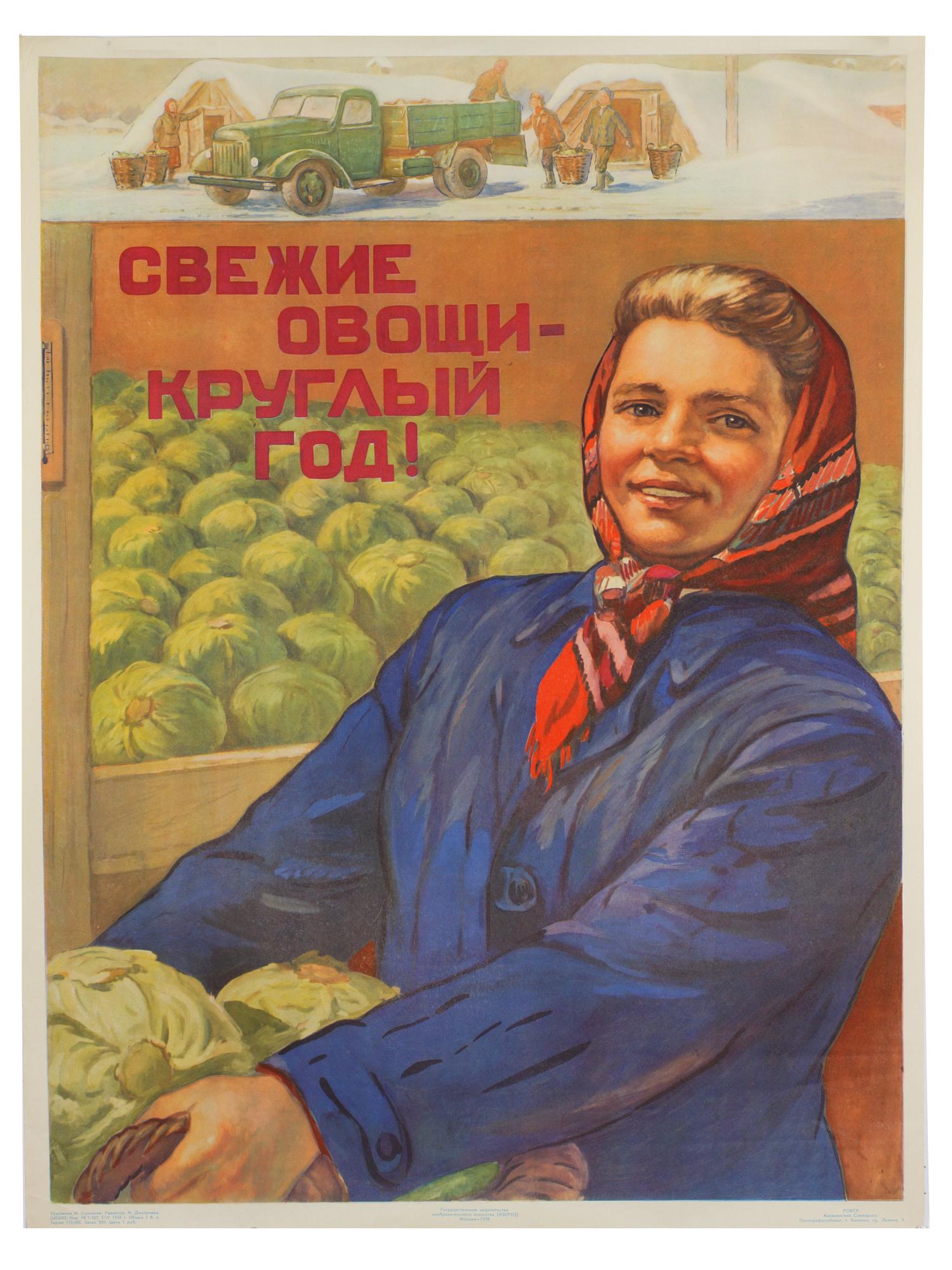 SoldA RUSSIAN SOVIET ORIGINAL PROPAGANDA POSTER 1958This rare first edition, vintage original poster was printed by Stalin publisher. Minsk. Circulation: 5000. Circa 1958. Dimensions: 23 1/4 x 16 1/2 in.See Sold Price