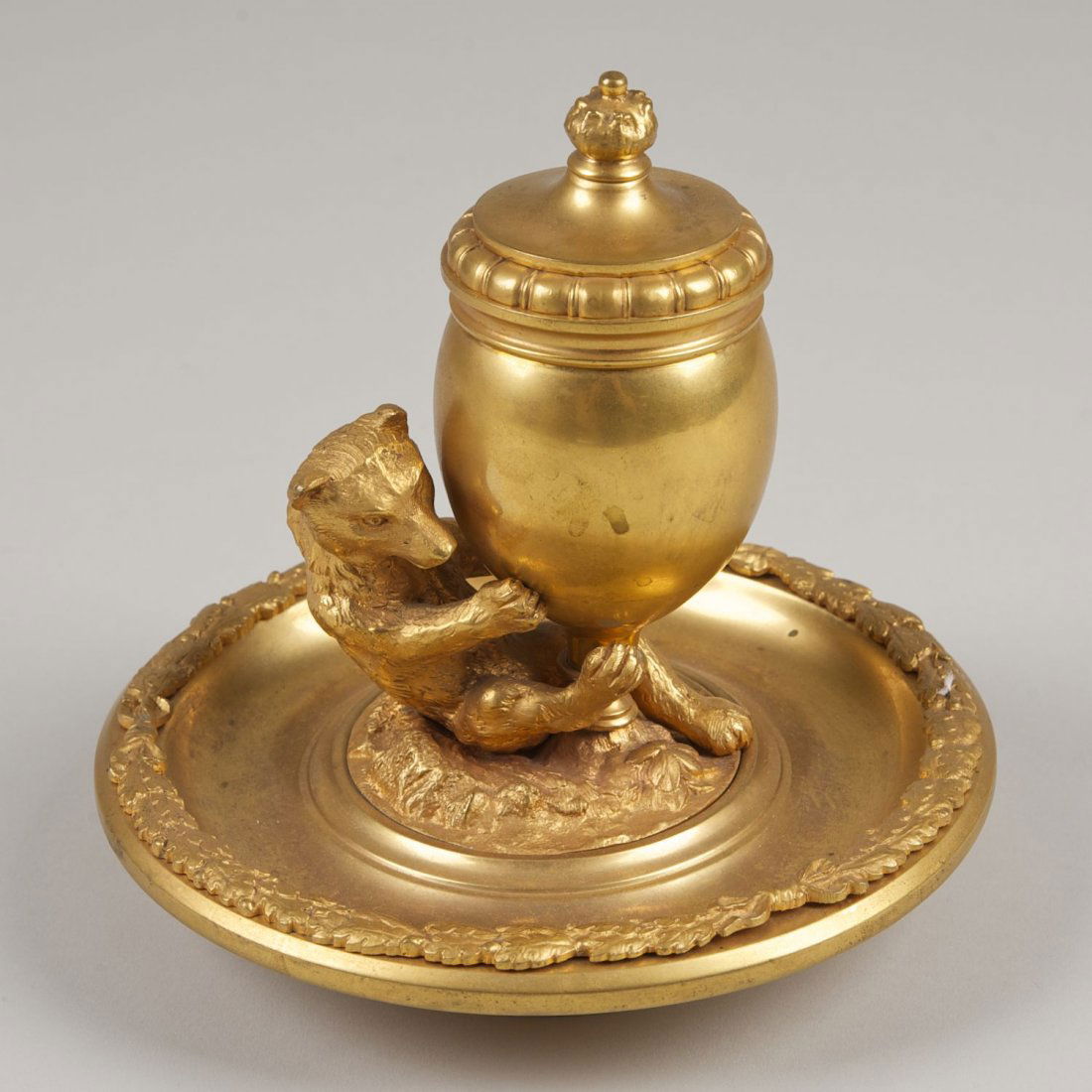 Russian style gilt bronze bear inkwell