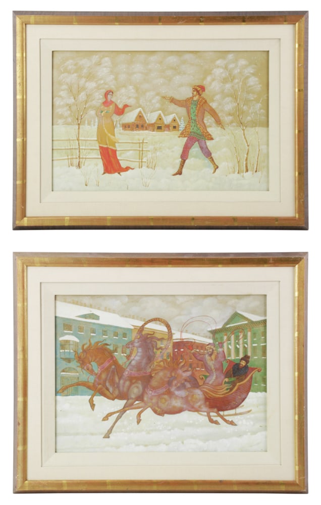 Russian Winter Scenes, Oil on Board