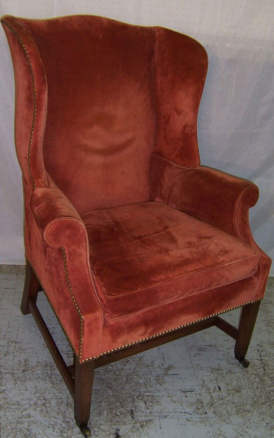Rust suede Georgian style wing chair