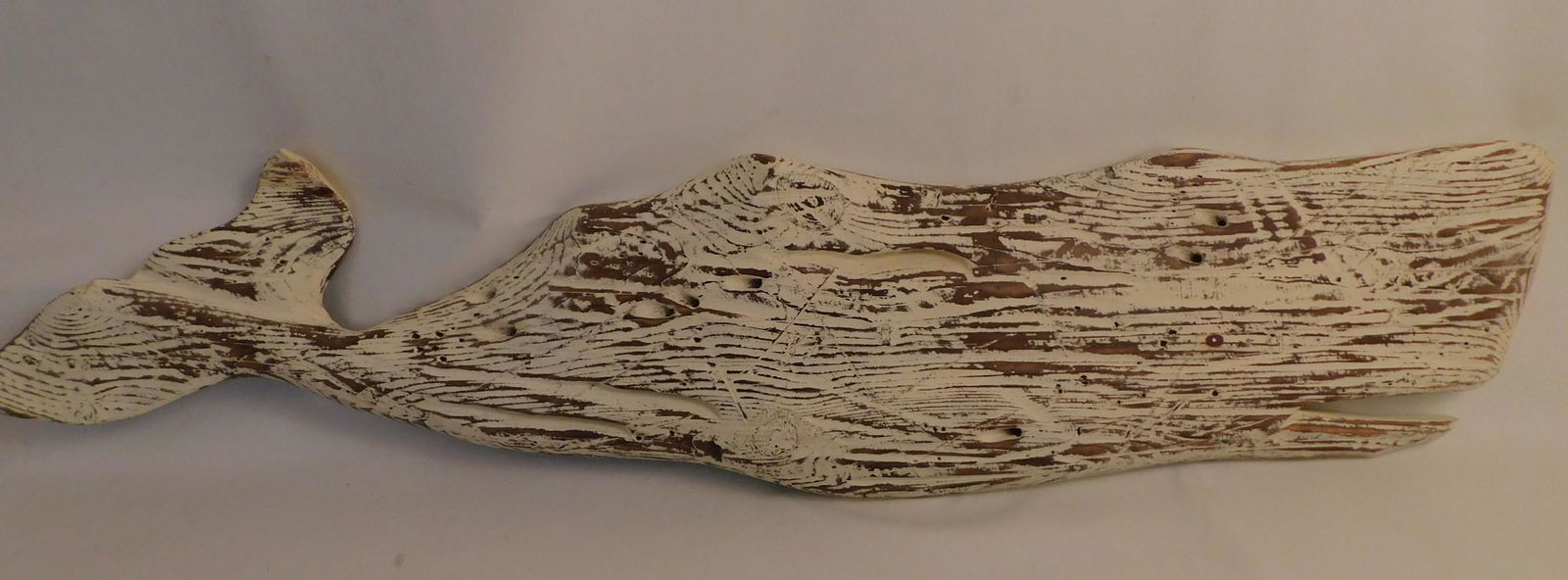 RUSTIC CARVED WOOD WHALE PLAQUE