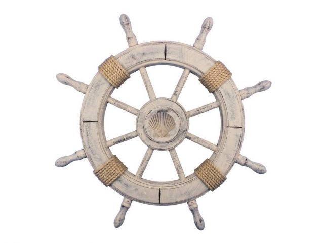 Rustic Decorative Ship Wheel With Seashell 24in.