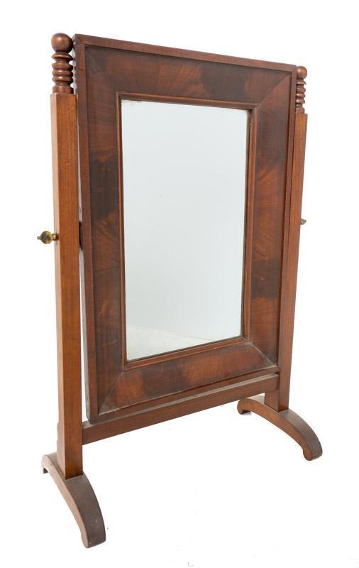Arts and Crafts Era Wooden Tilting Vanity Mirror with Carved Base