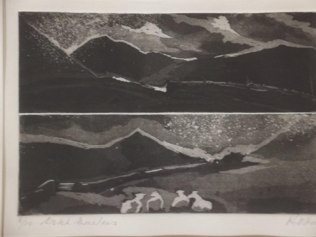 Ruth Hodge, Welsh mountains, signed etching 6/20, 8" x