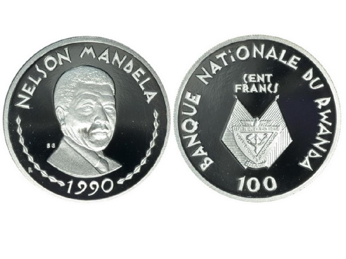 RWANDA 1990 Mandela 100 Francs Silver Proof