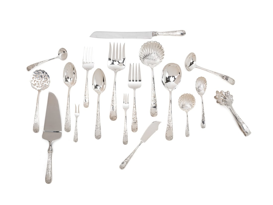 Partial Set- Wallace Silver Swirl FlatwareMar 21, 2026Group American Sterling Silver Flatware & Utensils6 days LeftPartial Bigelow Bros & Kennard Coin Silver Flatware Service43pc Puiforcat Cannes Sterling Flatware ServiceMar 22, 2026A Christofle Silver-Plate Flatware ServiceMar 17, 2026Assembled Set of American Sterling Silver King's Pattern FlatwareMar 19, 2026Fourteen Piece Group of Sterling Flatware, App. Total Sterling Wt.- 10.29 Troy oz. (14 Pcs.)Mar 26, 2026An American Silver Flatware ServiceMar 17, 2026Puiforcat 'Royal' Silver Flatware Service,Tiffany & Co. Silver 'Faneuil' Flatware ServiceMar 15, 2026Lunt 'Alexandra' Sterling Silver Flatware Service,Fifteen Piece Group of Antique Silverware, 19th c., App. French First Standard Wt.- 10.55 Troy oz.;Mar 27, 2026A Christofle Silver-Plate Flatware ServiceMar 17, 2026Alvin "Southern Charm" Sterling Silver Flatware Service for 8 With ExtrasMar 19, 2026International Silver 'Northern Lights' Flatware Service,Seventy Two Piece Wallace Sterling Dinner Service, 20th c., App. Total Sterling Wt.- 73.86 Troy oz.Mar 27, 2026