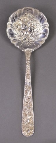 SoldAntique S Kirk and Son Repousse sterling silver berry serving spoonAntique S Kirk and Son Repousse sterling silver berry serving spoon. Marked as shown in photo. In very good original as found condition. Great quality and detail. 5 1/8 inches long. 28 grams. For in hSee Sold Price