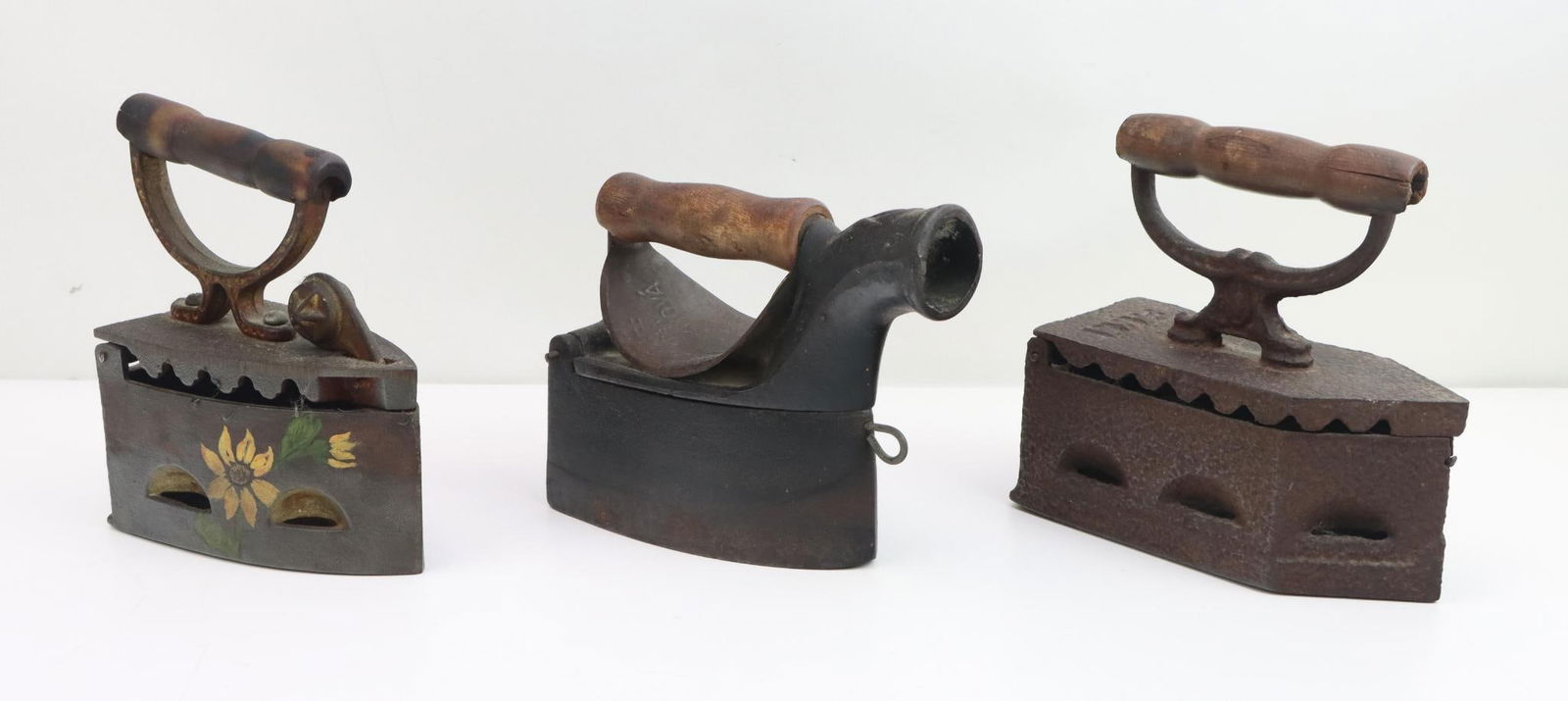 Sold(3) SAD IRON HEATERSINCLUDING: GRISWOLD #2485, GRISWOLD #1313 AND ADAMS CO. #10. LARGEST IS 11" X 11". PLEASE READ CAREFULLY - Terms for Purchasing and Shipping of Auction Items. Please read carefully before bidding. THISee Sold Price