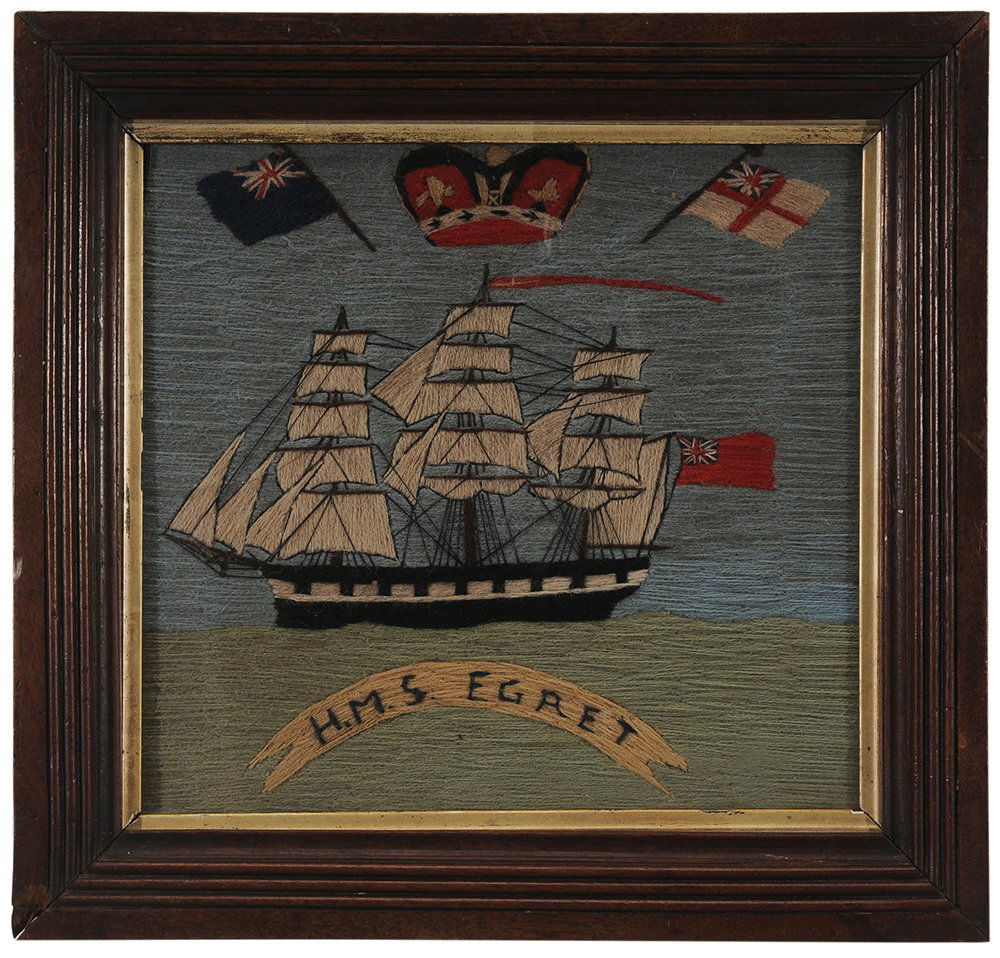 Antique oil on board painting of 3 masted sailing ship, signed.Mar 06, 2026Charles Robert Patterson (American, 1875-1958) - The Sea WitchMar 07, 2026BRITISH ANTIQUE WOOLWORK HMS BRITANNIA 120 GUNS NAVAL WOOLIE SHIP PORTRAIT CIRCA 18803 hrs LeftBRITISH ANTIQUE WOOLWORK ANTIQUE VICTORIAN THREE-MASTED NAVAL WOOLIE WITHIN OVAL BORDER CIRCA 18853 hrs LeftPAIR OF WOOLWORK SHIP PORTRAITS England, 19th Century 10" x 14" sight. Framed 14.25" x 18.25".5 days LeftENGLISH WOOLSEY OF SHIP & LIGHTHOUSE3 hrs LeftBRITISH SCHOOL (19TH CENTURY) FOLK ART PAINTING OF A SCHOONERMar 06, 2026ANTIQUE BRITISH ROYAL NAVY WOOLWORK "WOOLIE" HMS OUSE CIRCA 1905-1919 (8)3 hrs LeftBRITISH ANTIQUE WOOLWORK VICTORIAN ROYAL NAVY SILK WOOLIE EMBROIDERY CIRCA 18803 hrs LeftENGLISH SAILOR'S "WOOLIE" NEEDLEWORK NAUTICAL PICTUREMar 05, 2026ANTIQUE THOMAS H. WILLIS SILK AND VELVET "THE GOLDEN WEST" CIRCA 19003 hrs LeftBRITISH ANTIQUE WOOLWORK ANTIQUE VICTORIAN BRITISH ROYAL NAVY MULTI-SHIP WOOLIE CIRCA 18753 hrs LeftShip Under Full Sail, Flying English Flag, WatercolorMar 07, 2026BRITISH ANTIQUE WOOLWORK ANTIQUE VICTORIAN TWO-MASTED NAVAL WOOLIE WITH RED ENSIGN CIRCA 18753 hrs LeftSHADOW BOX DIORAMA OF A THREE-MASTED SCHOONER Late 19th Century Height 19". Width 24.5". Depth 4".5 days LeftENGLISH WOOLSEY OF SAILING SHIP3 hrs Left