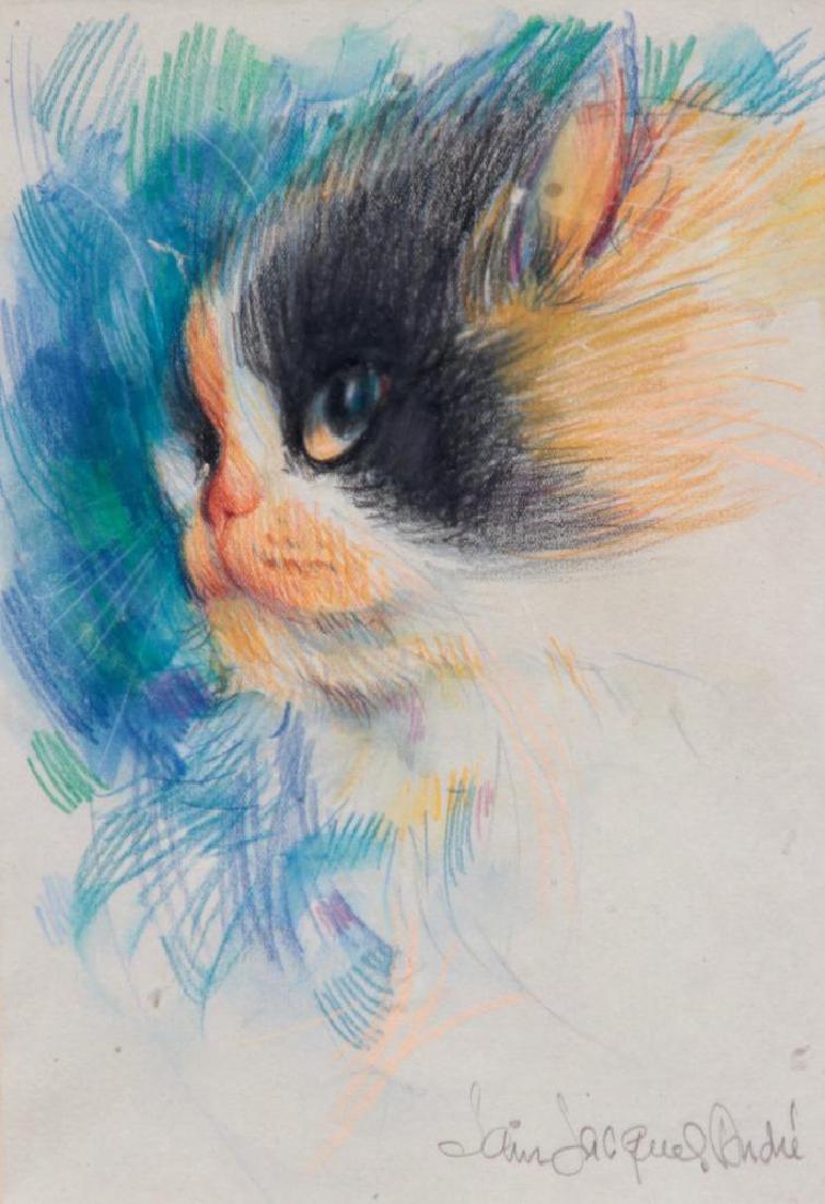 SAINTJACQUES ANDRE Portrait de chat de profil Pastel
