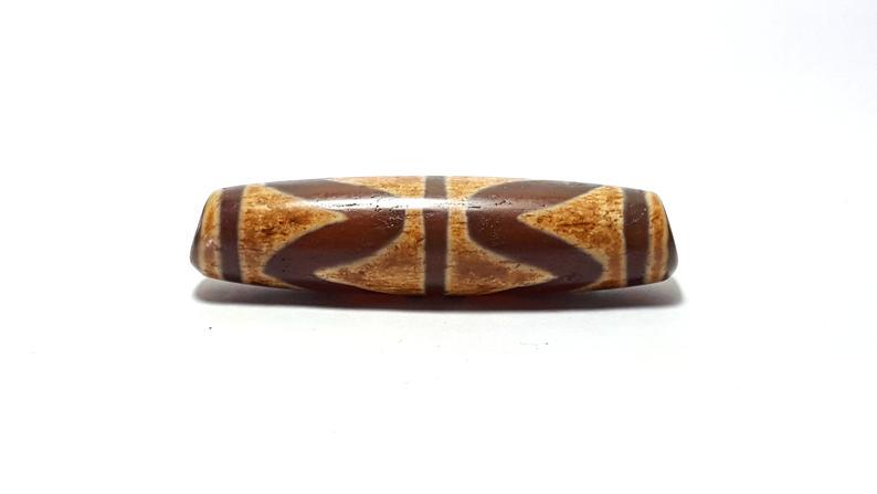 A double wave motif DZI Bead, Ming dynastyOrigin: China Date/Period:16-17th.c Approximate Size: Length:6.7cm Condition: Offered in overall good condition.Surface wears,with age and use.Please refer to the picture .LUXUR FINE ART AUCTION attemSee Sold Price