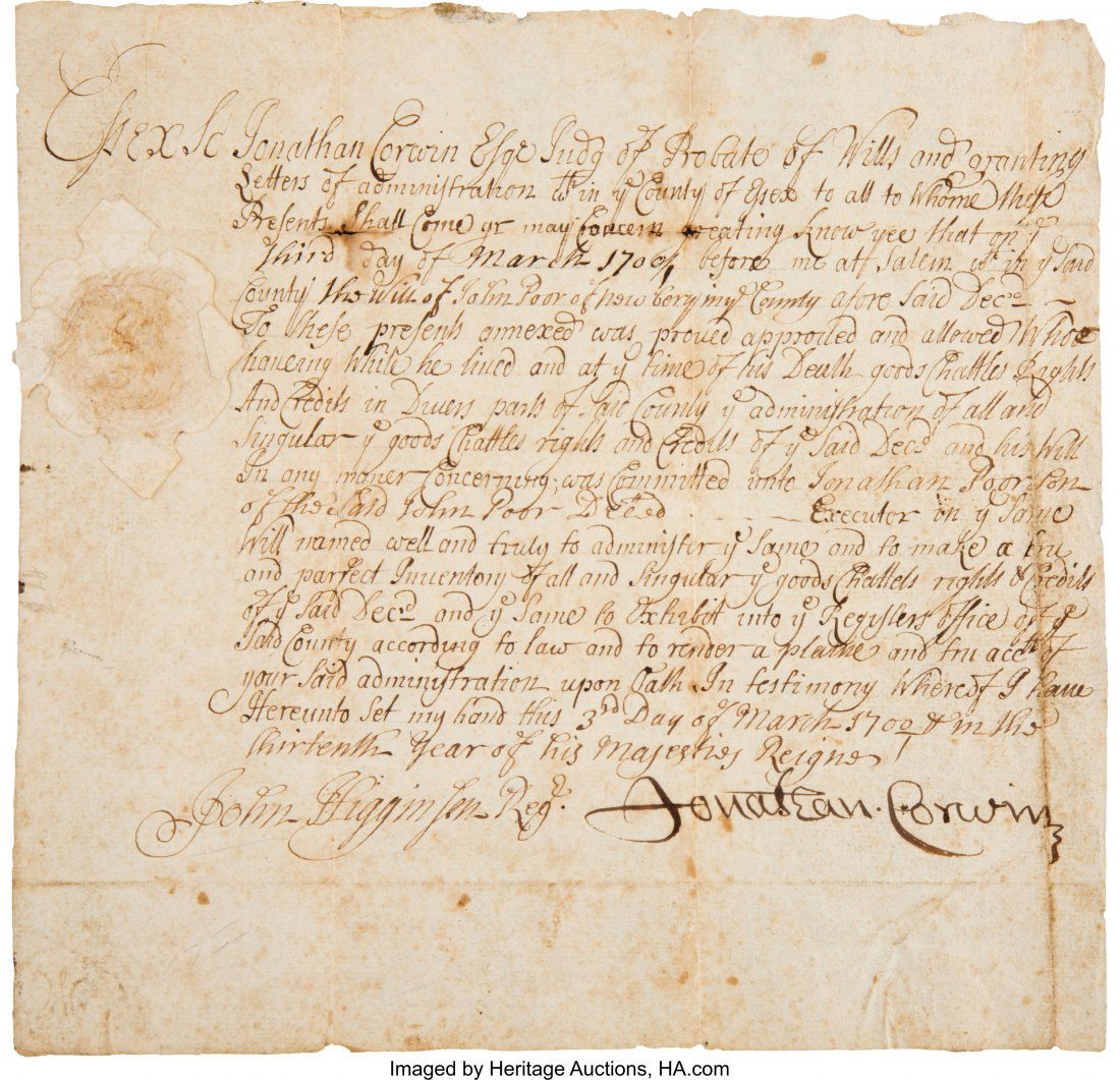 1752 English Vellum Manuscript Final Agreement1801 New York Mayors Court Manuscript BailMiddlesex County Colonial Massachusetts Bay Deed Recorded 1765Mar 15, 2026Colonial Massachusetts Legal Indictment Signed by Foreman Robert Crosman Jr.Mar 15, 20261728 Colonial Land Promissory Note Early American ManuscriptMar 15, 20261794 Connecticut Recorded Land DeedMar 15, 20261715 Essex County Massachusetts Colonial Land DeedMar 15, 2026Philip Dimmitt Autograph Document Signed, with a3 days Left1791 Connecticut Land Lease Indenture – New London County Manuscript with SealsMar 15, 20261779 Revolutionary War Pennsylvania Court DocumentMar 15, 2026King Charles I Letter Signed. One page of a bifo3 days Left1726 Colonial Connecticut Court Execution Writ – New London County Legal ManuscriptMar 15, 2026Diving.-Tobago.- Poyntz (Captain John) Letter to James Vernon, English Whig politician, 1699.Mar 05, 20261764 Plymouth, Mass. Bradford Family WillMar 15, 2026Elias R. Wightman Autograph Land Sale Document S3 days LeftDeclaration Signer Lewis Morris Autograph Docume3 days Left
