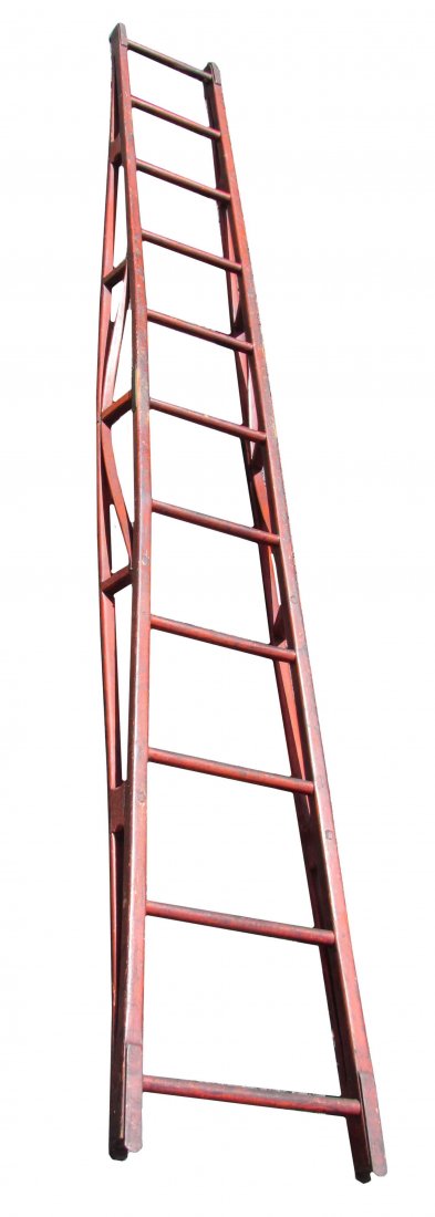 Antique Wooden Ladder with Aged Cream Finish and Metal Braces