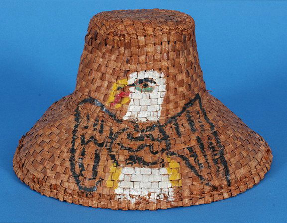 Salish Cedar Bark Hat with Painted Eagle 12" D. 6