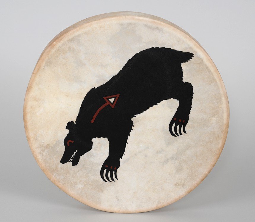 Salish Painted Drum with Bear Design 15" D. Fine