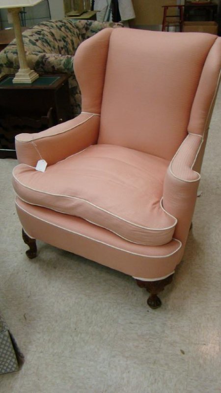SALMON COLORED WING BACK CHAIR