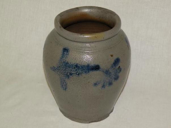 Salt glazed stoneware ovoid crock