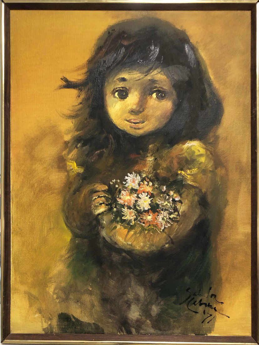 SoldSalvador Cabrera Portraits, Oil on Canvas, of a Young Girl and BoySalvador Cabrera Portraits, Oil on Canvas, of a Young Girl with Shawl on Her Head and a Young Boy with a Straw Hat. Both Dated '71. Canvas Size: 24" High, 18" WideSee Sold Price