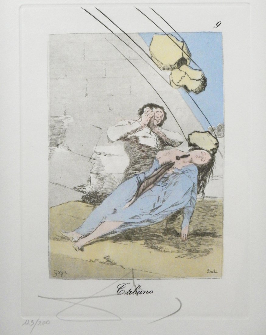 SoldSALVADOR DALI, ETCHING #131/200 H 8.5" W 6.2" LESSALVADOR DALI, ETCHING #131/200 H 8.5" W 6.2" LES CAPRICES DE GOYA Aquatint on original etching. "Como Dios manda". Printed on Rives BFK paper. Number 77-3 in the Official Catalogue of the Graphic WokSee Sold Price