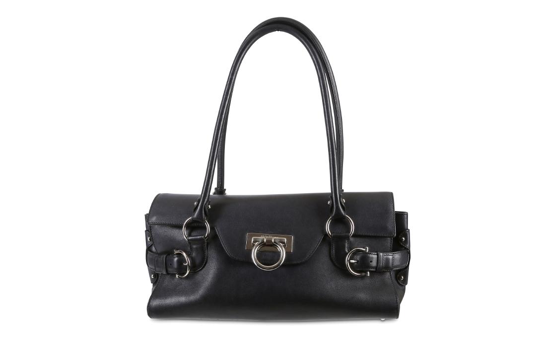 Salvatore Ferragamo Vala Black Leather Shoulder Bag Silver Accents AuthenticatedBidhaus4.2(844)$17023 hrs Left