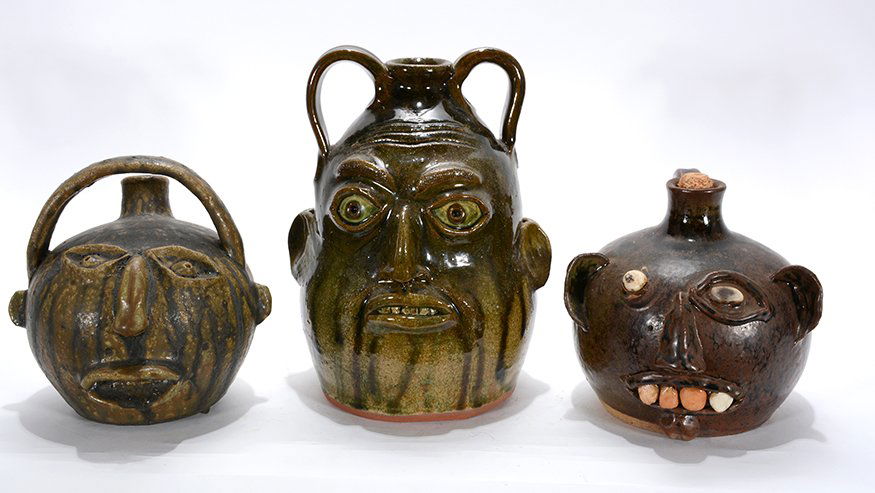 Sam Williams, C. West and Unknown. Three Face Jugs.