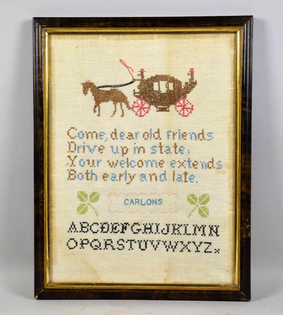 SAMPLER, ''Carlons''. 17.5''H x 13.5''W.