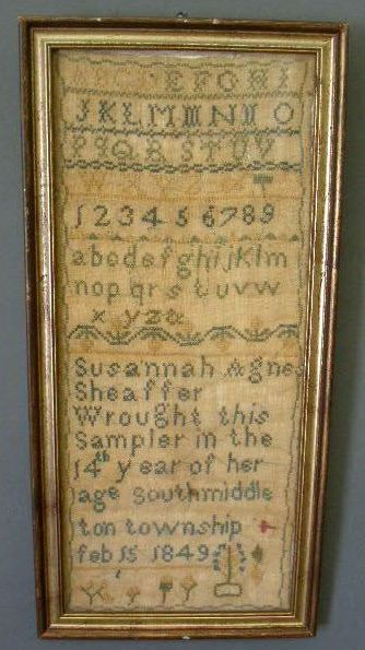 Sampler, wrought by “Susannah Agnes Sheaffer 1849