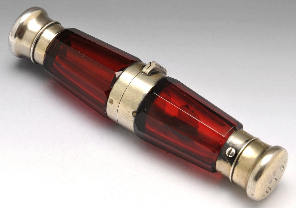 Sampson Mordan ruby glass double ended scent bottle