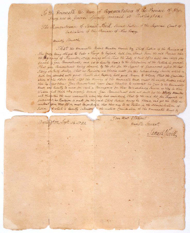 SAMUEL NEVILL (1698-1764) AUTOGRAPH DOCUMENT