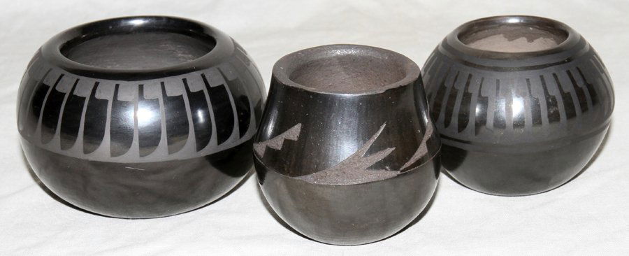 SAN ILDEFONSO BLACKWARE POTTERY VASES,