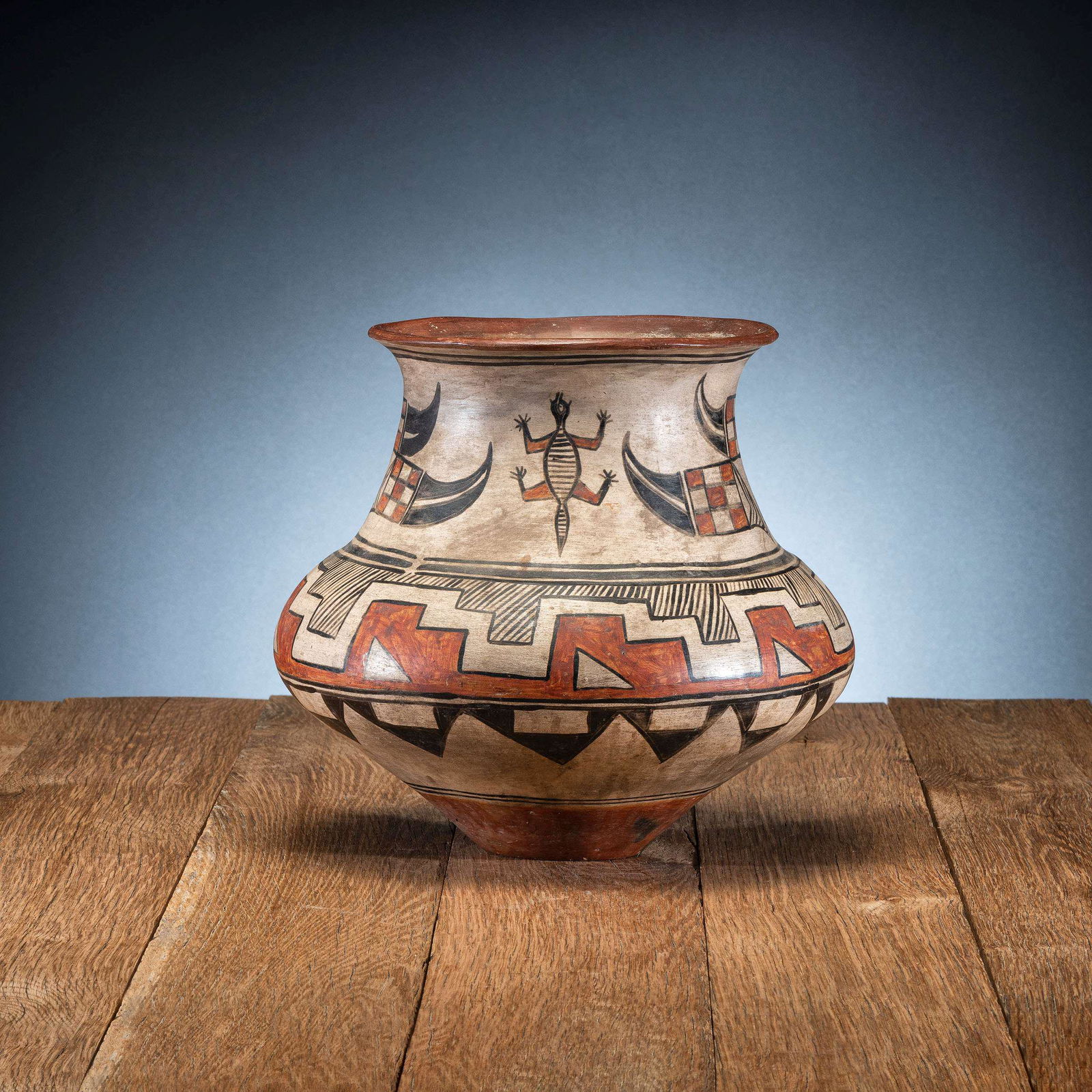 San Ildefonso Polychrome Pottery Olla, with Lizards
