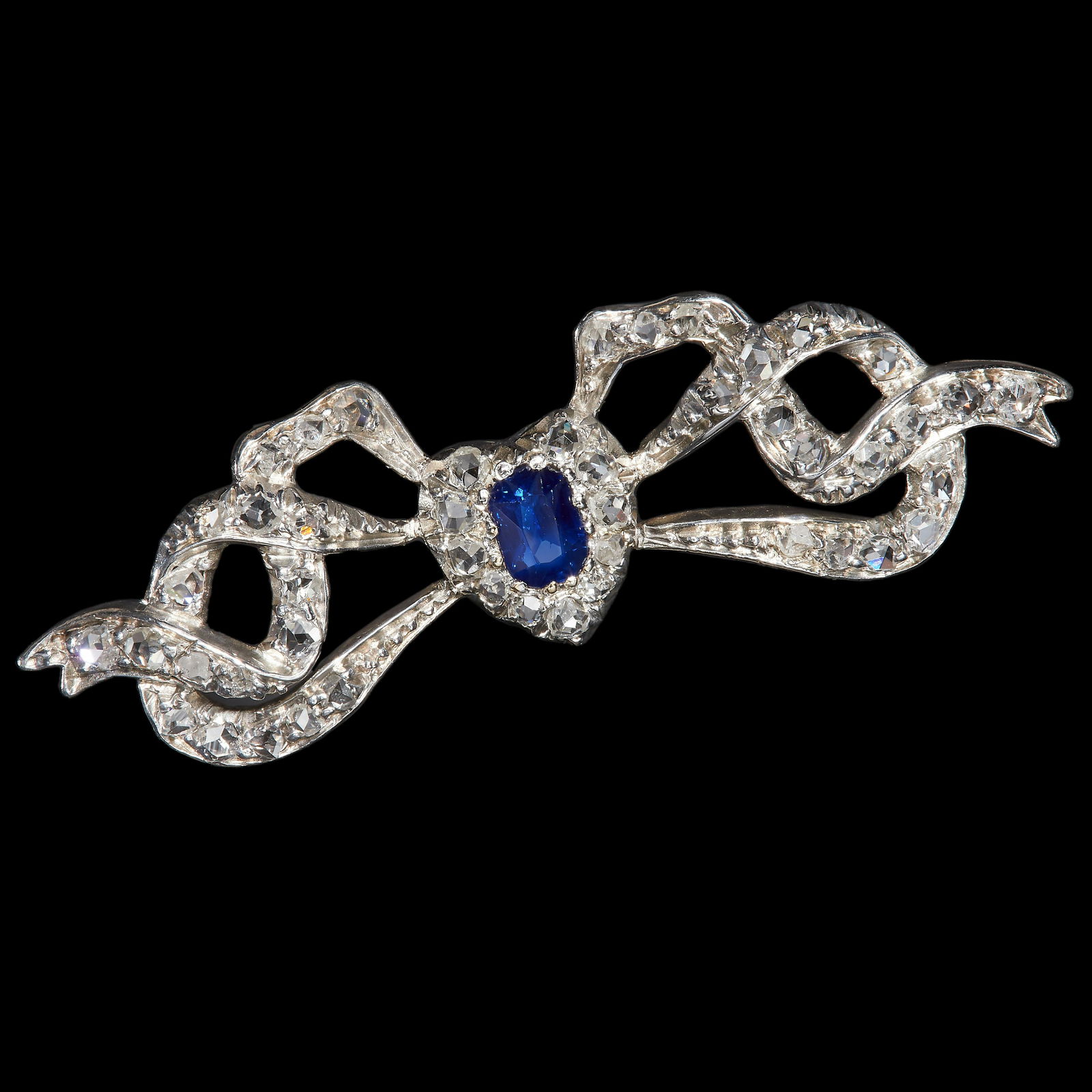 SAPPHIRE AND DIAMOND BOW BROOCH