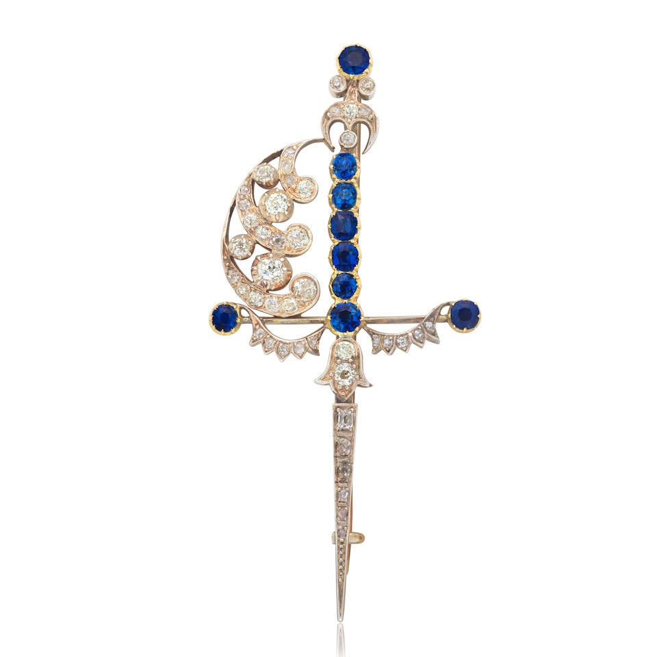 SAPPHIRE AND DIAMOND DAGGER BROOCH