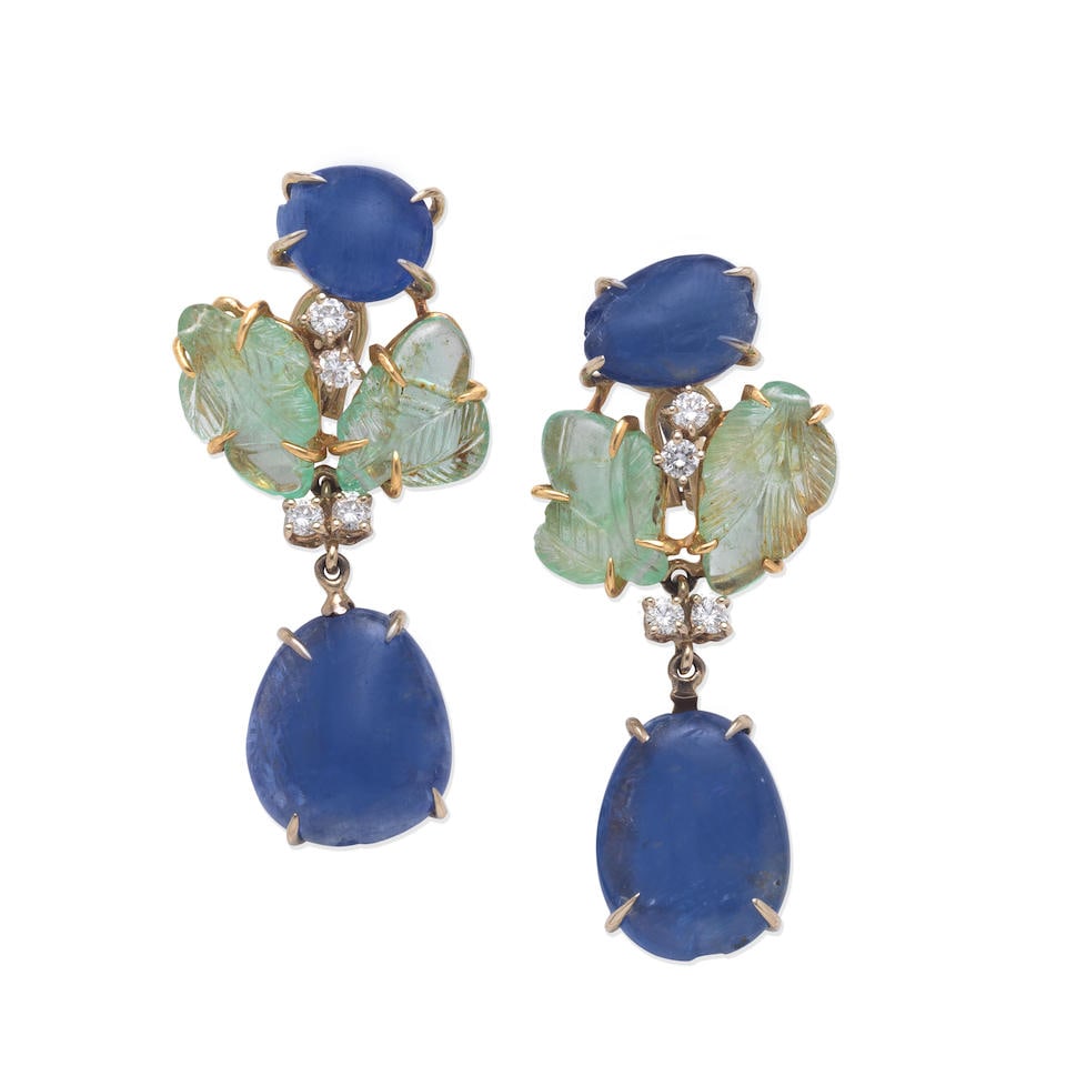 SAPPHIRE AND EMERALD PENDENT EARRINGS