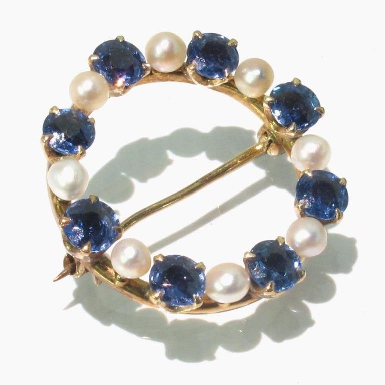 Sapphire and Pearl Brooch
