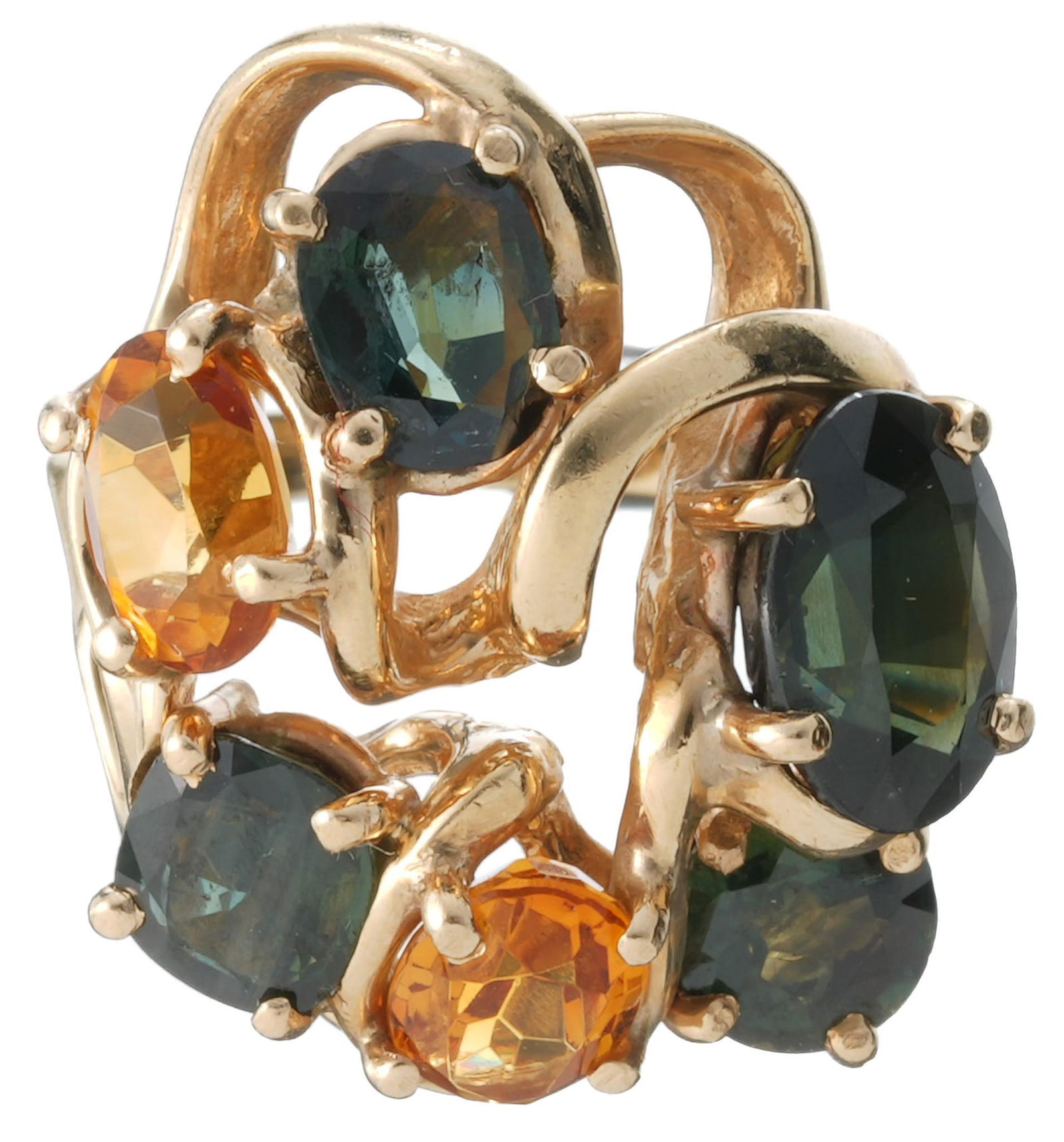 A Retro Sapphire & Diamond Ribbon Ring in 14K