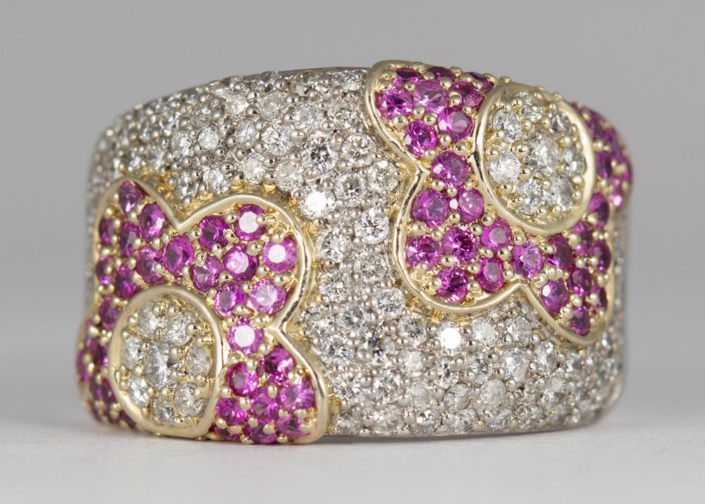 18K White Gold Ladies Ring with 4.17tcw Pink Sapphires and 1.31tcw Adjacent DiamondsRiverside Galleries4.4(202)$504 days Left