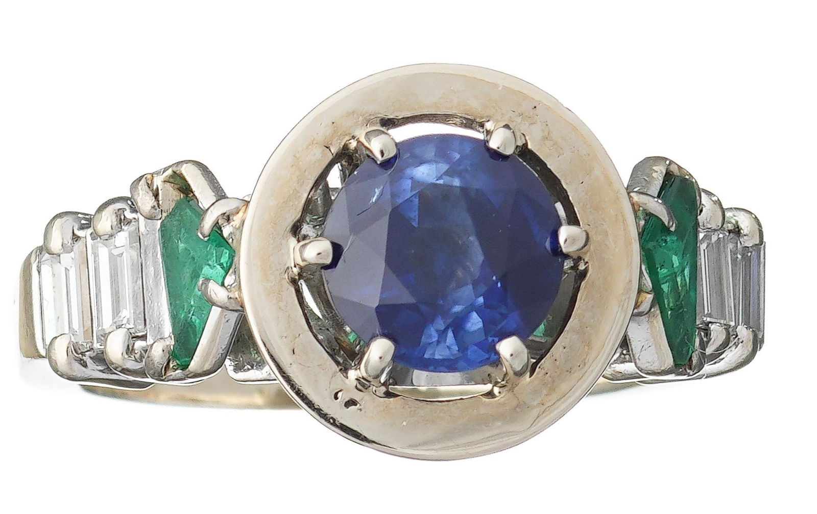 Sapphire Emerald Diamond 14k Gold Ring