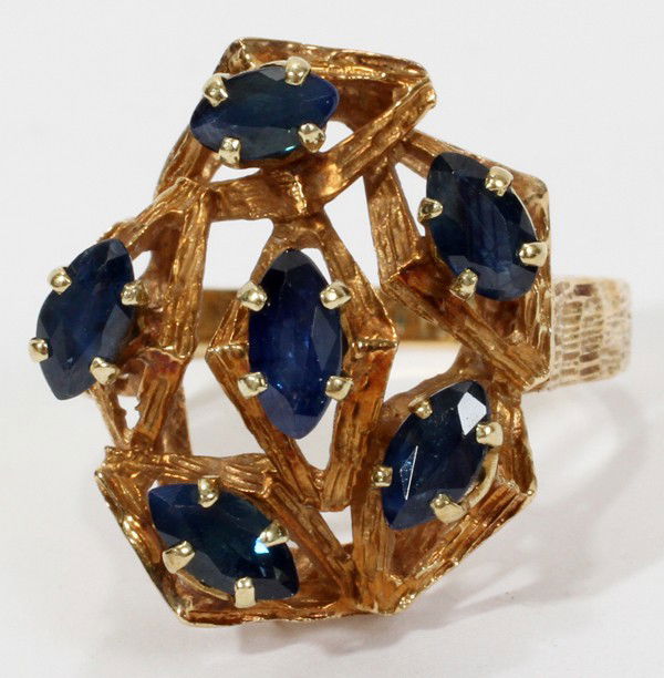 SAPPHIRE MARQUISE GOLD RING, C1970