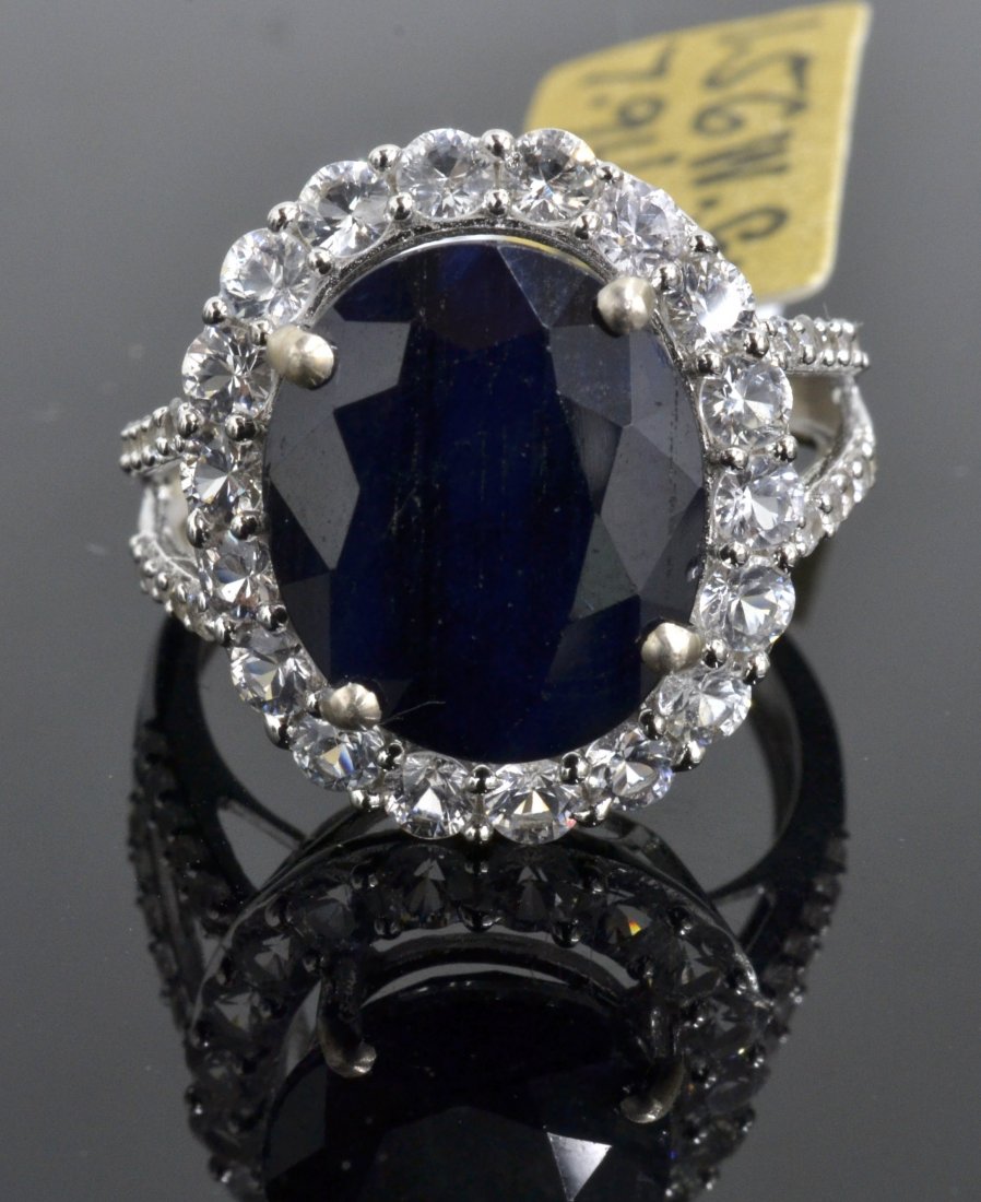 14k White Gold 6.5ct Sapphire 0.90ct Diamond Ring