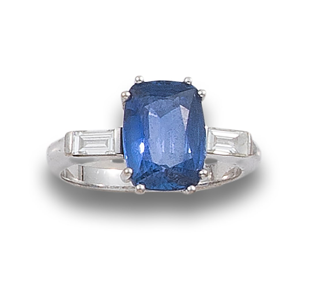 SAPPHIRE RING, DIAMONDS, IN WHITE GOLD