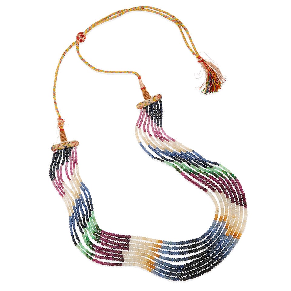 SAPPHIRE, RUBY AND EMERALD MULTI STRAND BEADED NECKLACE