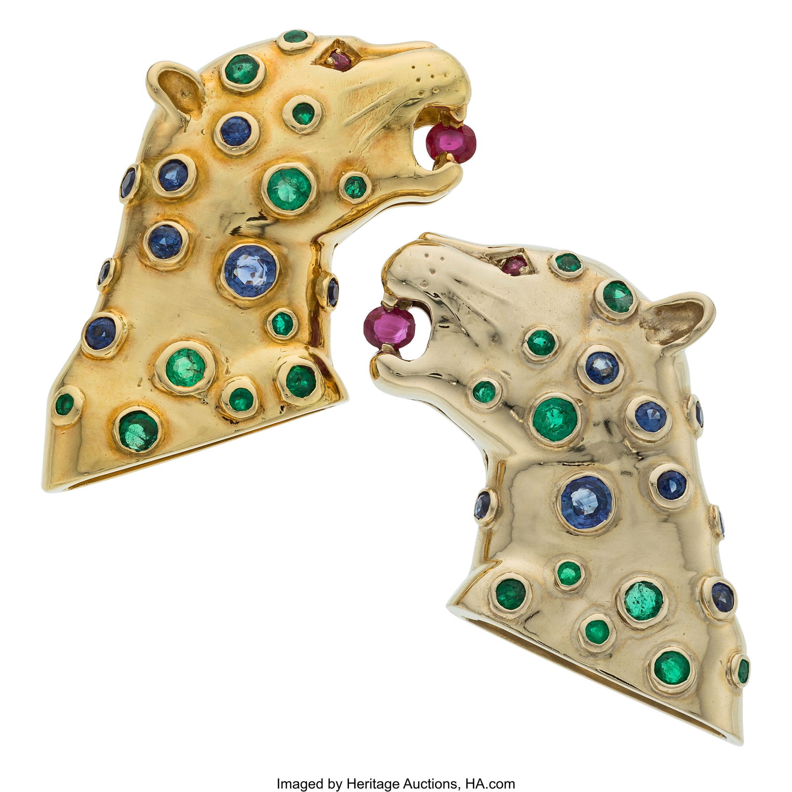 Sapphire, Ruby, Emerald, Gold Brooches Stones