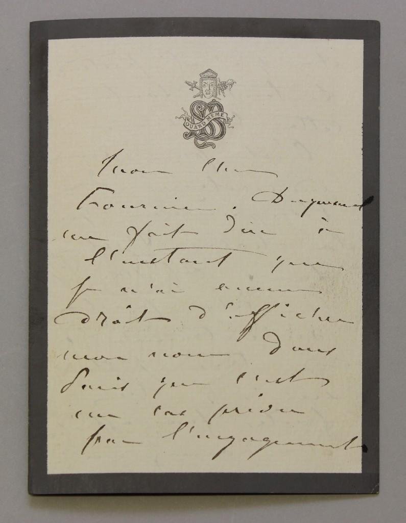 Antique Handwritten 1800s Notarized French Document Watermarket, French Republic StampFeb 14, 2026HISTORY - ZSCHOKKE Johann Heinrich Daniel Magdebourg, 1771 - Aarau, 1848 - Historian and Writer477 Lots AwaySebastien le Prestre, Marquis de Vauban AutograpFeb 26, 2026Stephane Mallarme Autograph Letter Signed. ThreFeb 26, 2026Jules Verne Autograph Letter Signed. One page ofFeb 26, 2026Corsica - French Revolution. de ROSSI [Guillotined in Paris in 1794]. Autograph letter.Feb 18, 2026CHAPTAL. Autograph letter as Minister of the Interior.Feb 18, 2026King Louis XIV of France Autograph Letter to JeaFeb 26, 2026Catherine de' Medici Autograph Letter Signed. TwFeb 26, 2026Gen Winfield Scott Letter Jan 25, 18551 day LeftUlysses S. Grant Autograph Letter Signed. Two paFeb 26, 2026Philip Sheridan Autograph Letter Signed. Two paFeb 26, 2026WILDE (OSCAR) Autograph letter signed to Anne Wakefield Richardson, Tite Street [1887]Feb 18, 2026WILDE (OSCAR) Autograph letter signed ('Ever your affectionate/ friend/ Oscar Wilde') to Beatri...Feb 18, 20261873 Republique Francaise Watermarked DocumentFeb 14, 2026Johannes Brahms ALS to Fellow Composer, Fantastic Musical ContentFeb 18, 2026