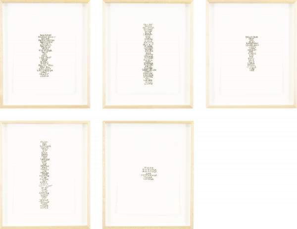 SARAH LUCAS b. 1962 Five Lists, 1991 Graphite