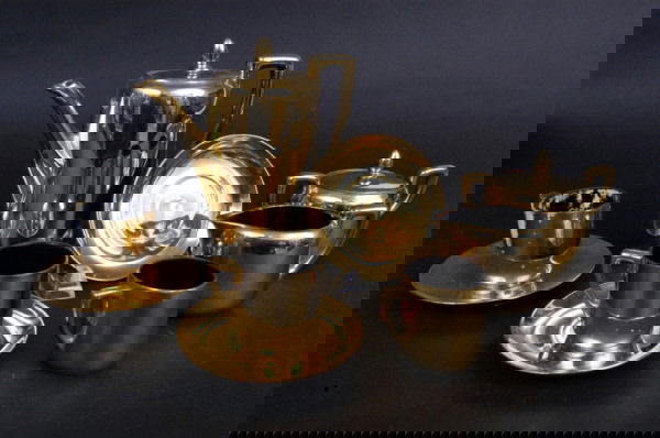 Group Lot of Silverplate2 days LeftLot of Gold Lusterware2 days LeftSterling Silver Estate TablewaresFeb 24, 2026Collection of silver consisting of pepper and salt shakers, jugs, bell, bowl and statue of a boy,4 days LeftSterling Coffee and Tea Set by Reed & BartonMar 10, 2026Gorham Sterling 5 Pc. Coffee and Tea SetMar 10, 2026Gorham Silverplate Tea and Coffee Service in Medallion Pattern2 days Left6 Piece Sterling Silver Tea and Coffee SetFeb 26, 2026A twenty-six part French CARTIER "La Maison Des Must" gilt decorated porcelain tableware setFeb 24, 2026Coffee, Teapots, Etc. - Pewter, Gorham, Queen Art, International2 days LeftComplete four-piece silver service by Wolfers Frères (Brussels), consisting of a teapot, coffee4 days LeftSterling Silver Tea Set3 days LeftANTIQUE AND VINTAGE SILVER PLATED TABLEWARESFeb 22, 2026Len Carella, Etc. Pottery Tableware, 7 Pcs.Mar 12, 2026Four Antique Copper Luster Pitcher/CreamersJezler Swiss .800 Silver Modernist Tea Set 3pc with Ebony Handles3 days Left