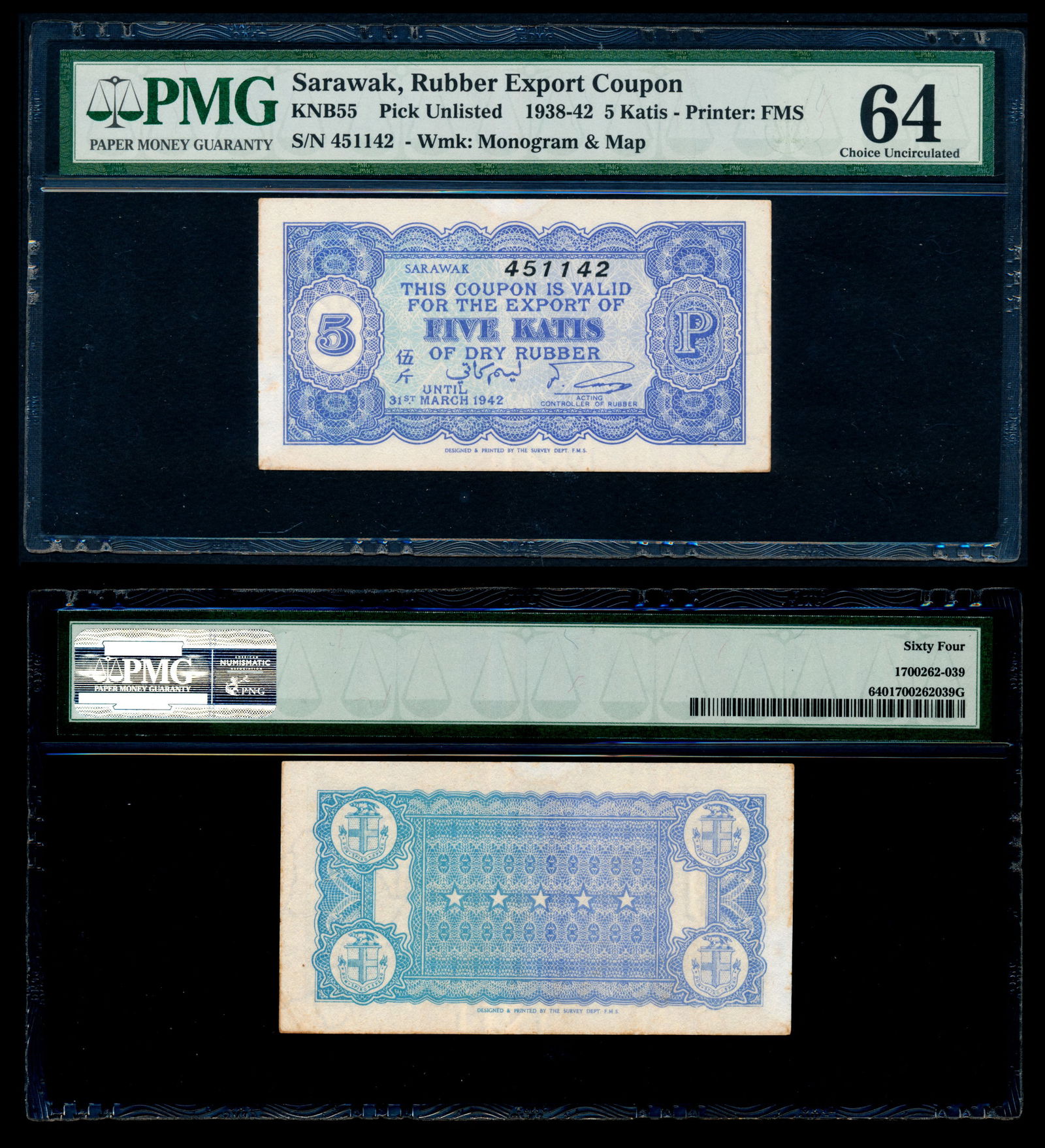 Sarawak Rubber Export Coupon 5 Katis 1942
